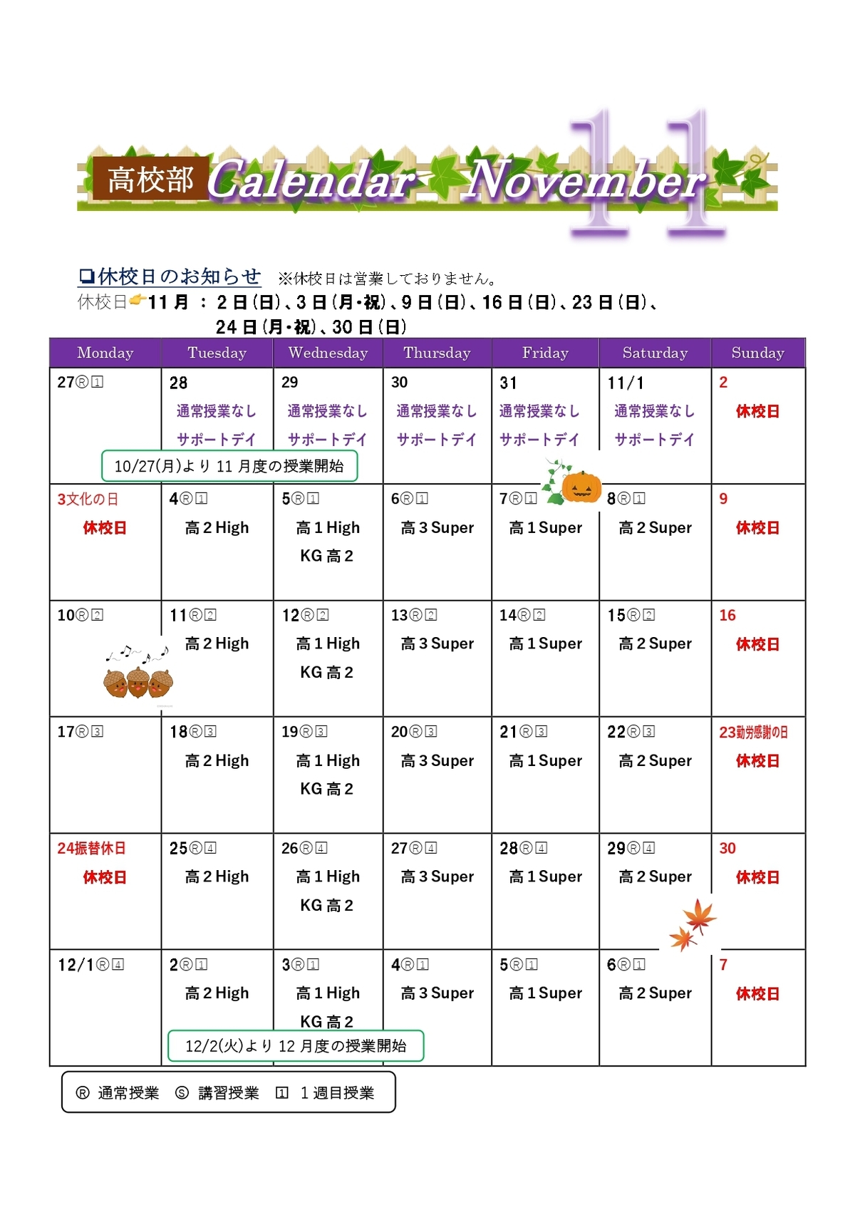 11月 月間予定表